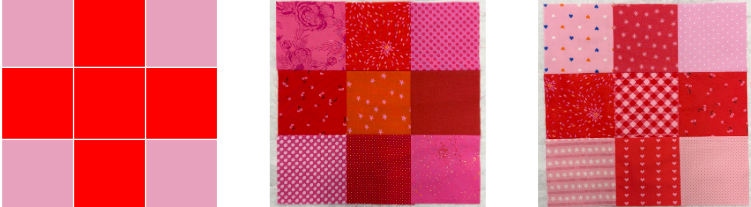 Our February block is a pieced 9 patch with pink in the corners. These blocks will be turned in at the February 15th meeting to win a chance to win all the blocks submitted. If you have a suggestion for a block you want to use, email blocklotto@indymqg.com.